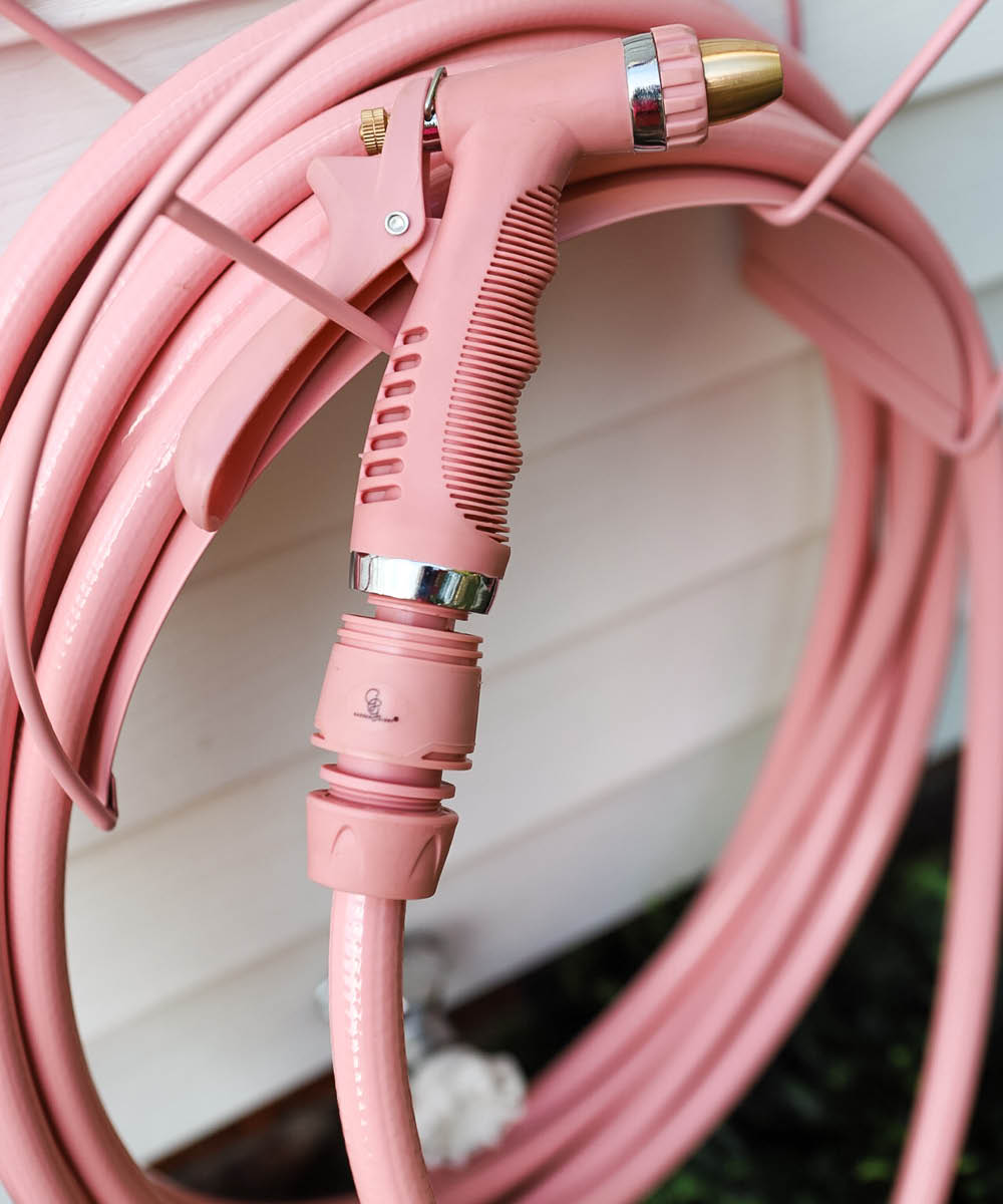 This blooming blossom kit contains a soft pink hose, a matching and decorative hose holder and a trigger nozzle with all fittings needed in the same pink. The knitting reinforcement around the inner tube of our coloured garden hose makes the hose pliable and non-kinking. The plastic surface is dirt-repellent and UV-protected to prevent bleaching from sun exposure, so your garden hose will keep its perfect color for years and years. All hoses are made of PVC and free from lead, cadmium and phthalates.