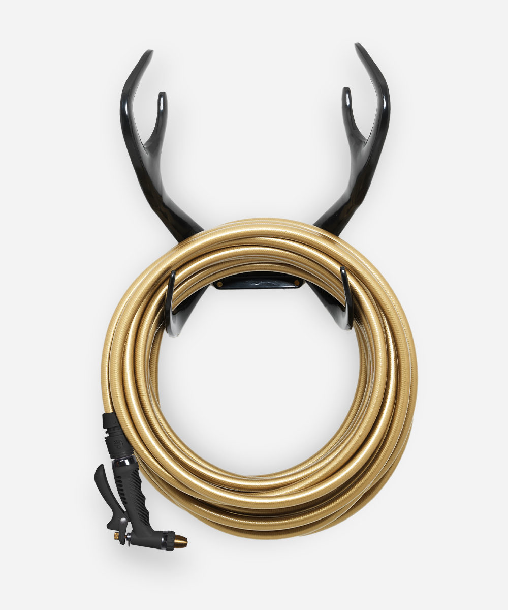 Go for gold and give your garden a little regal elegance with our brilliant and bold Royal Rebel hose kit. In a stunning black and gold color combo, our hose kit features our 20-meter Gold Digger garden hose with matching spray gun and our black Reindeer hose holder. A dazzling watering kit for every style king or queen. This royal flush could be the start of a new gold rush.