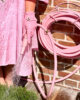 This kit contains a soft pink hose, a matching and decorative hose holder and a nozzle with all fittings needed in the same pink.