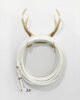 The gold reindeer shaped hose rack is designed and manufactured in Sweden, it is made of aluminum and endures rough weather. They come with a 5-year warranty. The white garden hose called White Snake has a knitting reinforcement around the inner tube which makes the hose pliable and non-kinking as all our coloured garden hoses. The plastic surface is dirt-repellent and UV-protected to prevent bleaching from sun exposure, so your garden hose will keep its perfect color for years and years. All hoses are made of PVC and free from lead, cadmium and phthalates. The hose comes in 20 meter / 65 feet, If you need longer, easy – just buy an additional one. We provide you the extension connector for free. The trigger nozzle is compatible with all ½” water hoses. Comes with fittings compatible with taps worldwide. The roses will sing while the hose is spoiling them with lots of clean water.