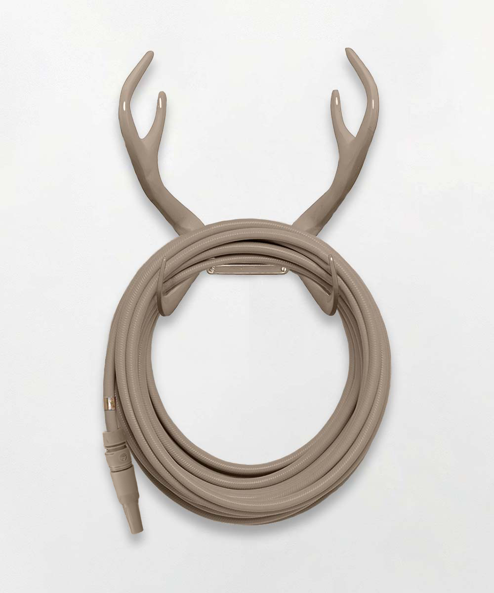 The reindeer shaped hose rack is designed and manufactured in Sweden, it is made of aluminum and endures rough weather. They come with a 5-year warranty. The Sahara Desert garden hose has a knitting reinforcement around the inner tube which makes the hose pliable and non-kinking. The plastic surface is dirt-repellent and UV-protected to prevent bleaching from sun exposure, so your garden hose will keep its perfect color for years and years. All hoses are made of PVC and free from lead, cadmium and phthalates. The roses will sing while the hose is spoiling them with lots of clean water. The hose comes in 20 meter / 65 feet, If you need longer, easy – just buy an additional one. We provide you the extension connector for free. The Sahara Desert nozzle set is made of plastic. Choose between jet, soft shower and mist when watering. These fittings works worldwide.