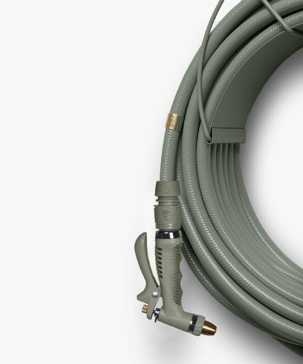 Detta slangkit består av en trädgårdsslang, classic väggfäste och vårt pistolmunstycke med tillhörande kopplingar..